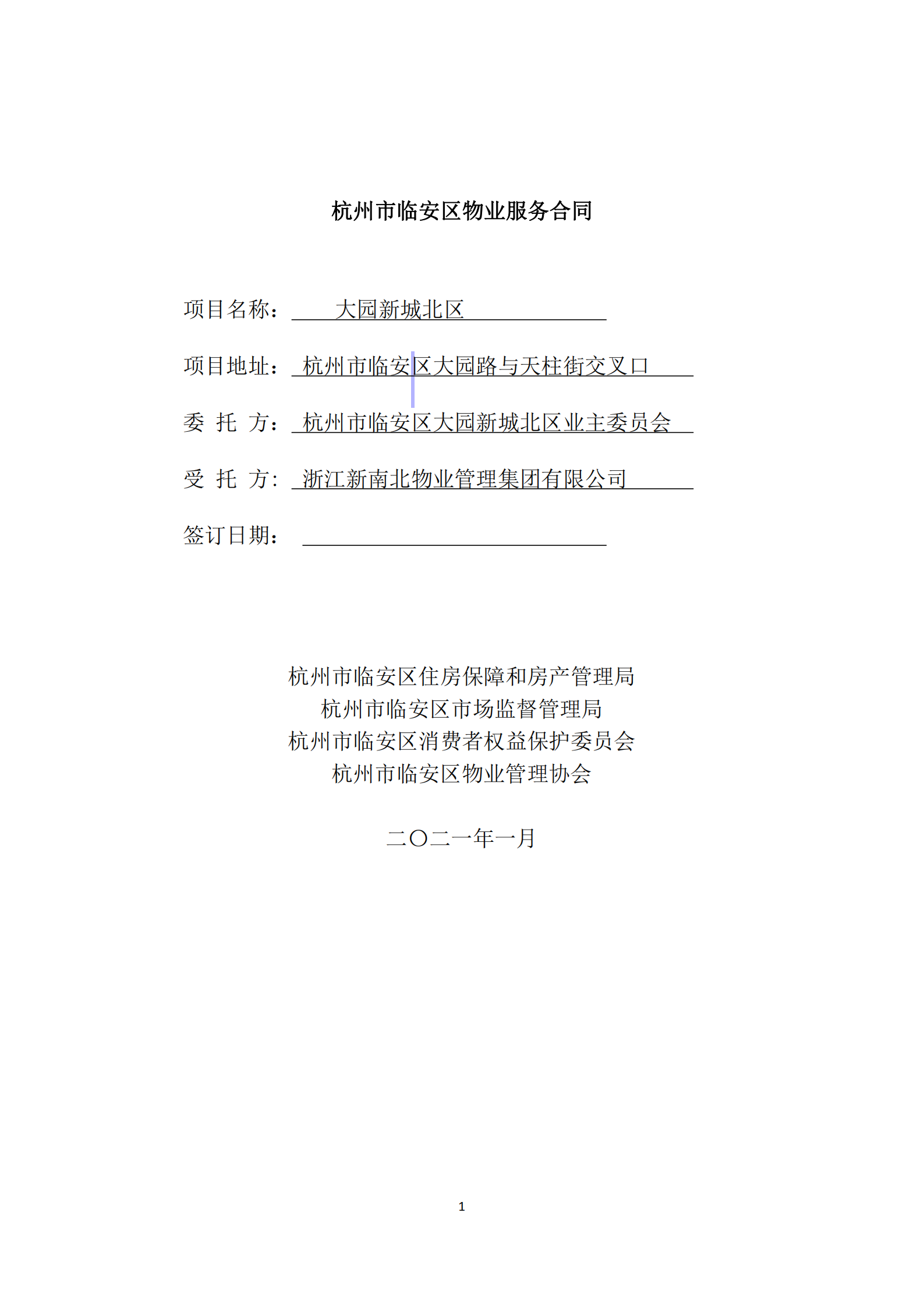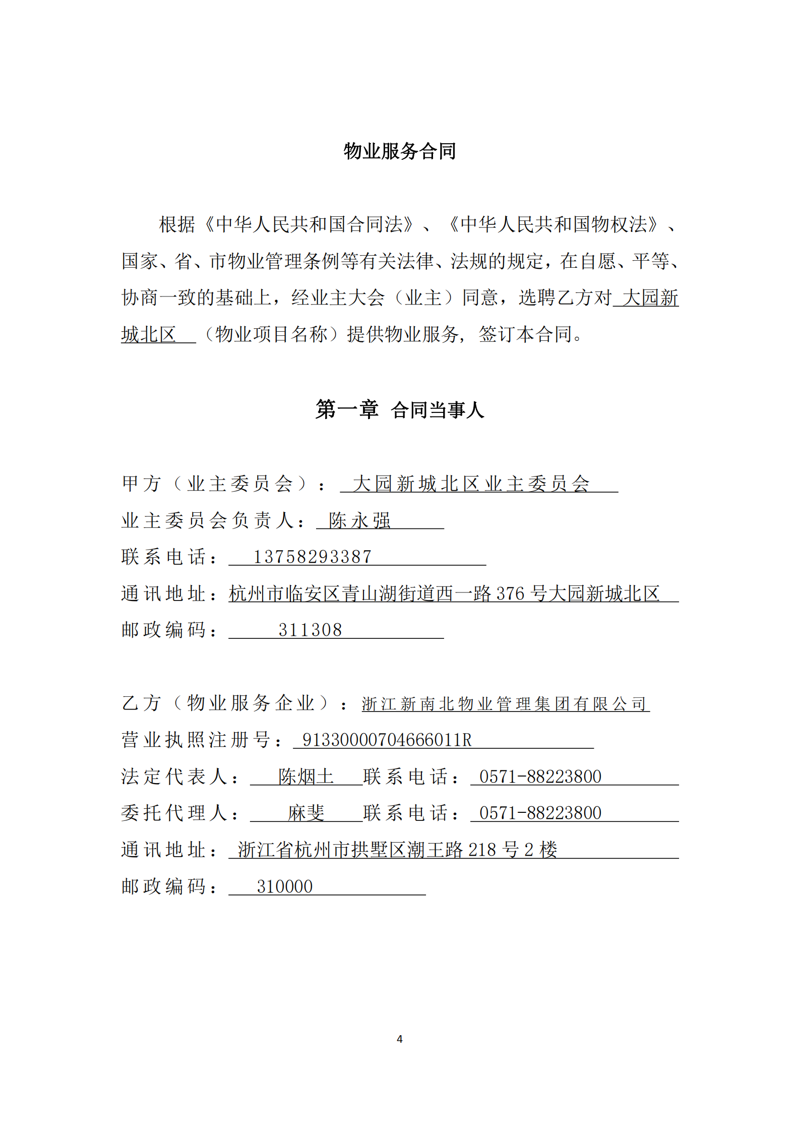 浙江新南北物业管理集团有限公司(附:物业服务合同(草案))