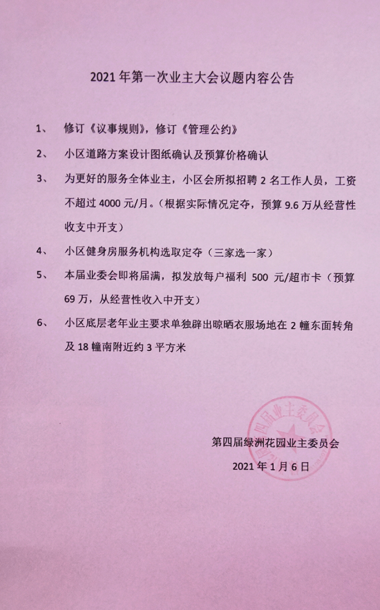 2021年第一次业主大会议题内容公告