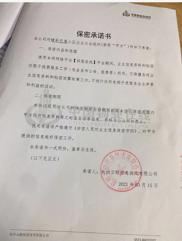 关于晴彩巴里业主资料保密承诺书