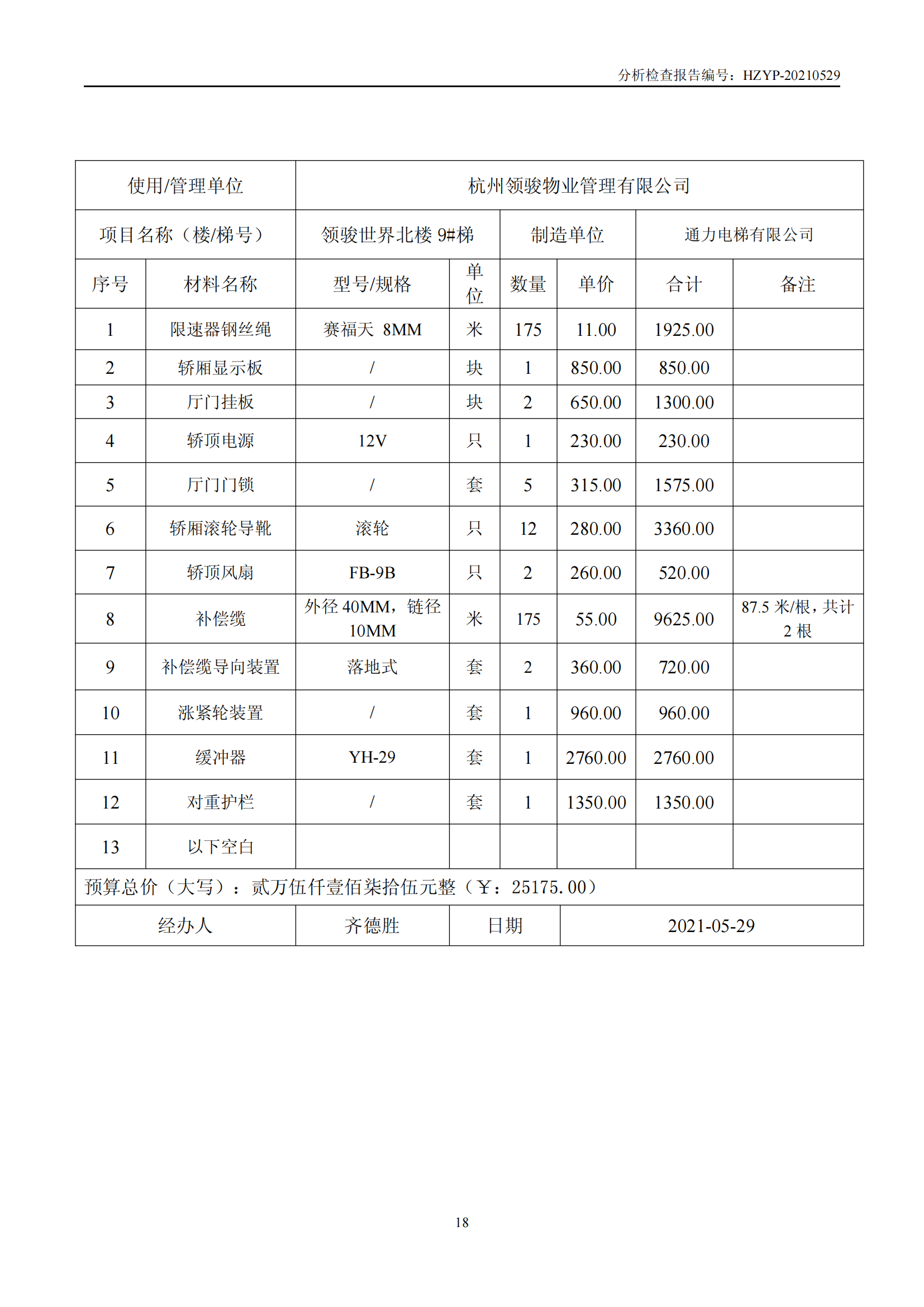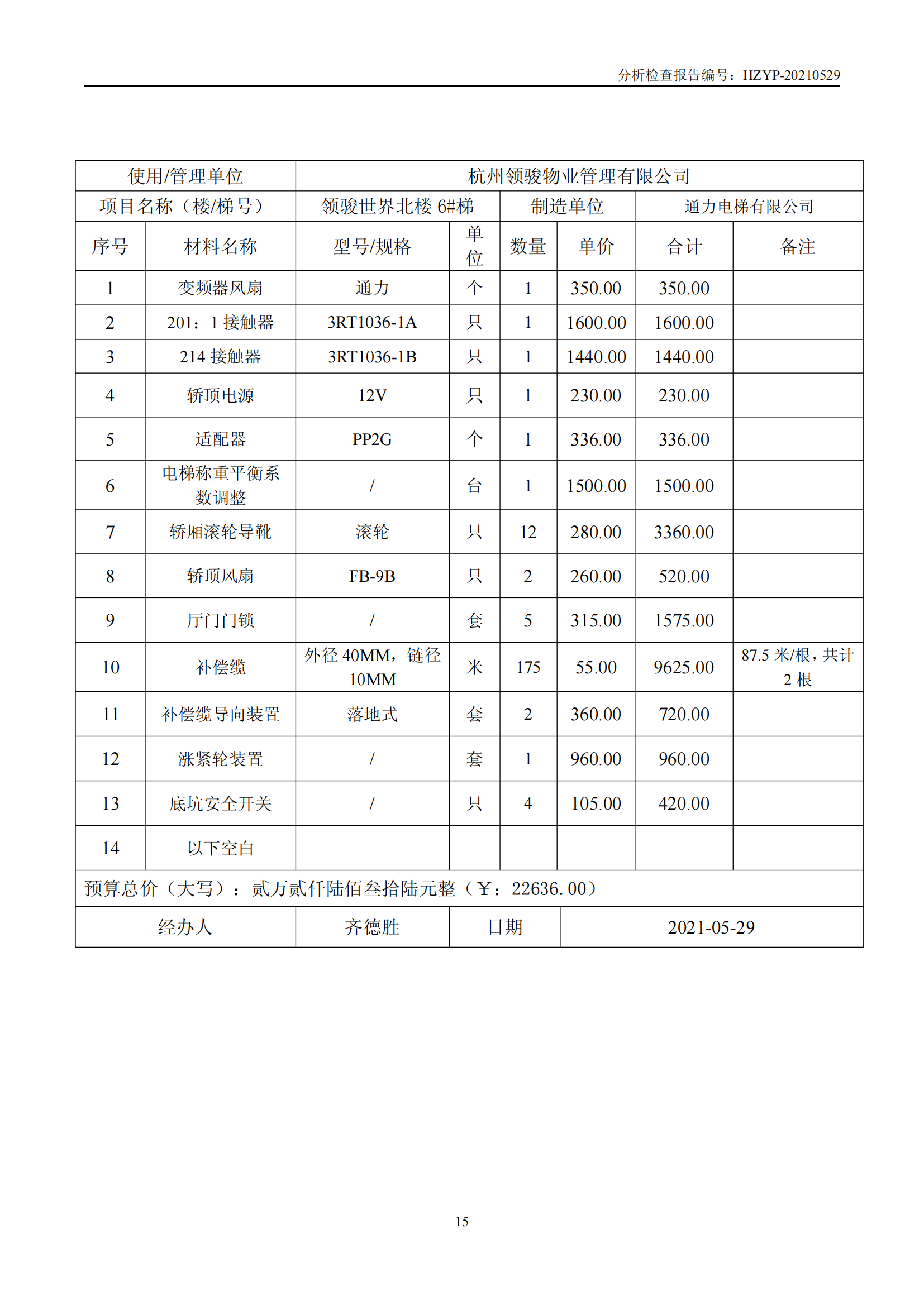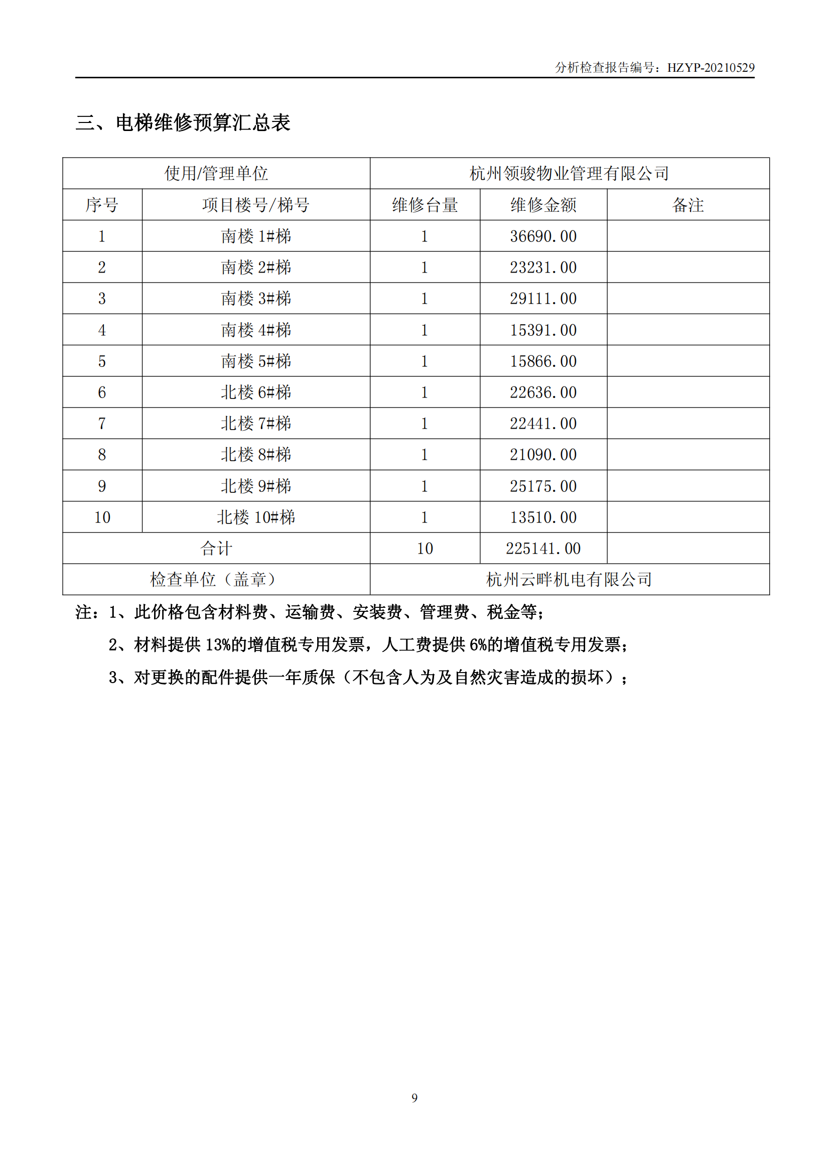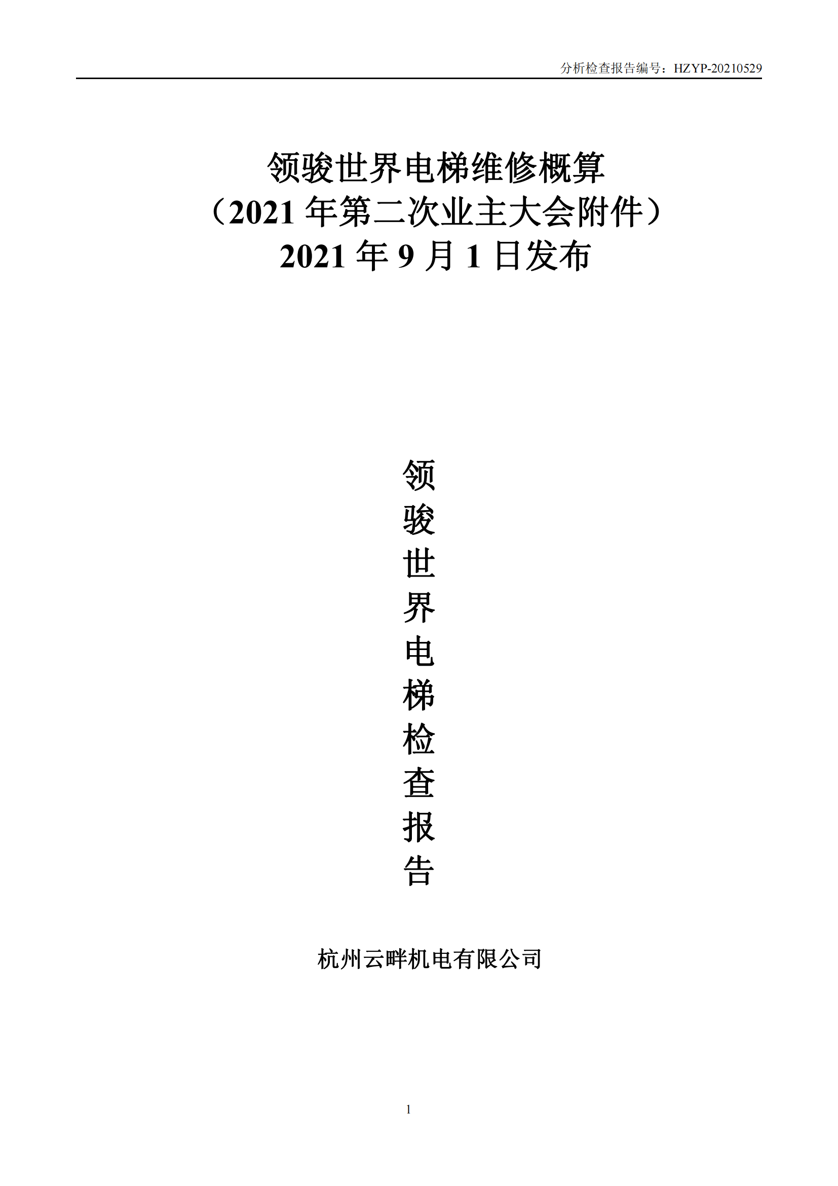 领骏世界电梯维修概算(领 骏 世 界 电 梯 检 查 报 告)