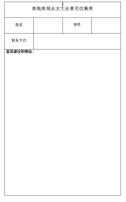 书面意见提交地址:美哉美城业委会办公室(物业三楼)