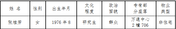 1、 原业主委员会委员郁胜泓因个人原因退出业主委员会,由候补委员张桂芳增补为业主委员会委员;