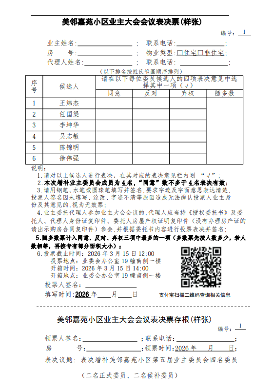 杭州市上城区美邻嘉苑小区第五届业主委员会