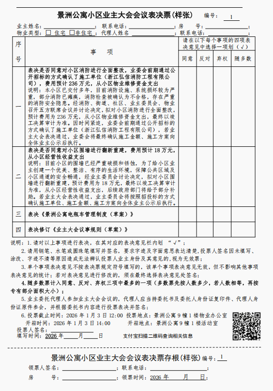 杭州市拱墅区景洲公寓小区第三届业主委员会