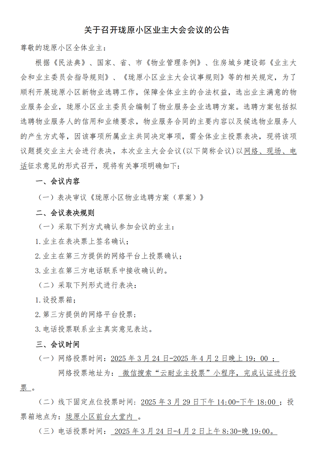 业主大会召开公告