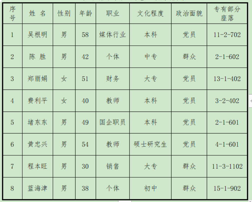 根据《关于望宸府小区业主委员会委员候选人的初步公示》,公示期间物业管理委员会未收到业主的书面意见。物业管理委员会现将8名正式候选人名单提交业主大会审议并表决,根据业主大会会议决议产生望宸府小区第三届业主委员会。