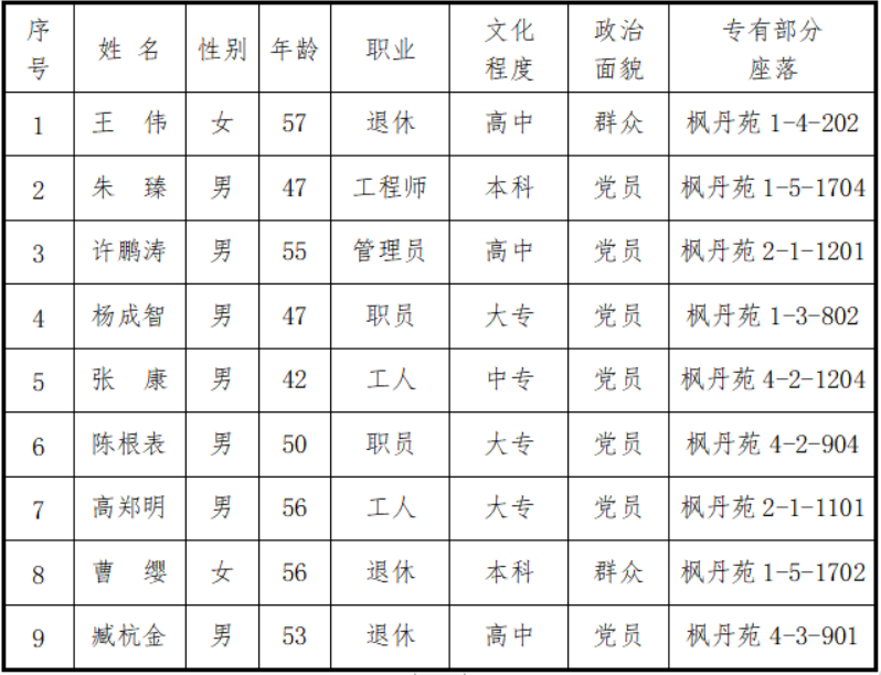 《关于枫丹苑小区业主委员会委员候选人的初步公示》公示期间物业管理委员会未收到业主的书面意见。物业管理委员会将9名正式候选人名单提交业主大会审议并表决,根据业主大会会议决议产生枫丹苑小区第五届业主委员会。