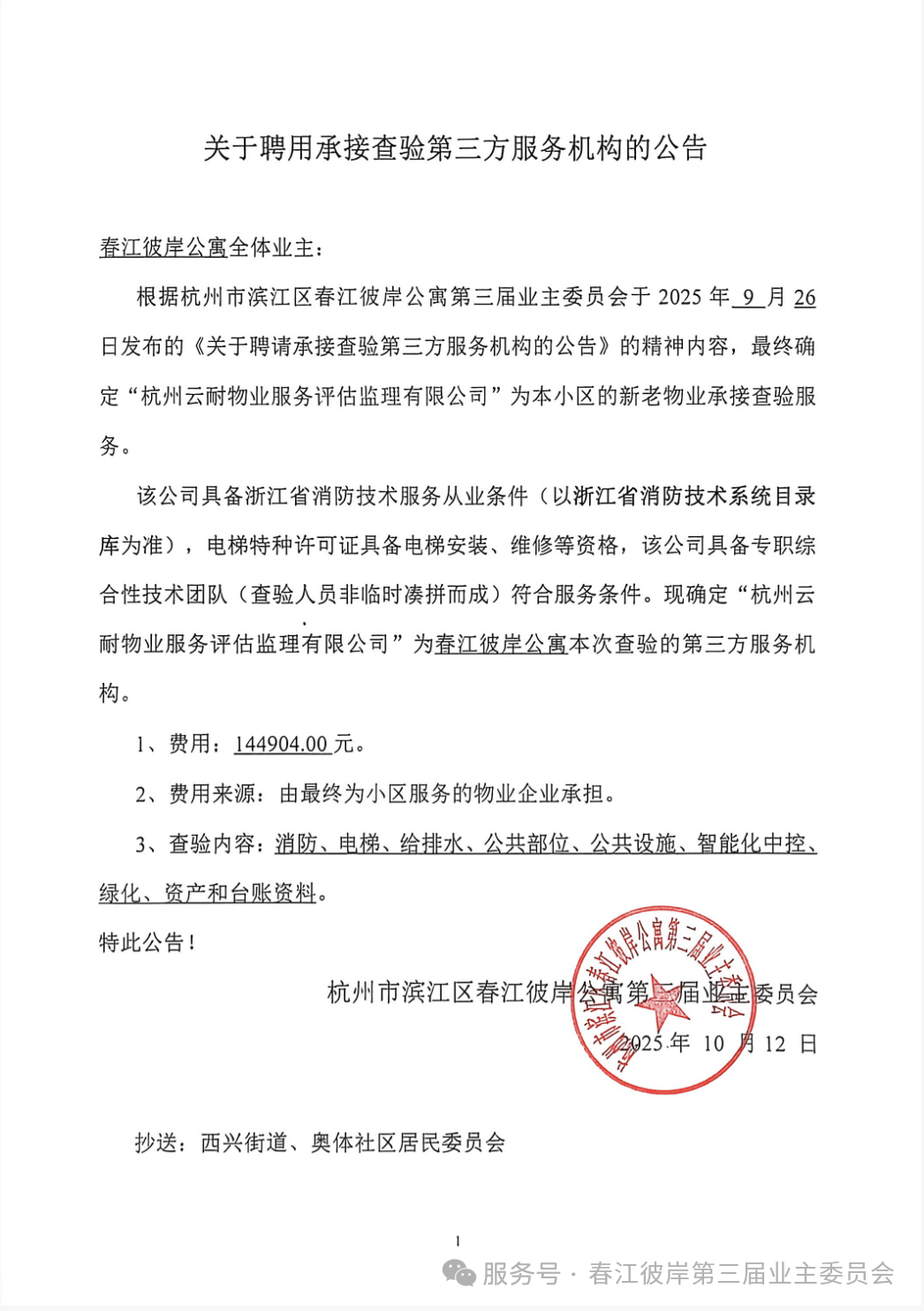 杭州市滨江区春江彼岸公寓第三届业主委员会