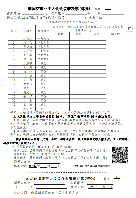 杭州市萧山区蜀山街道蜀惠朝闻花城第一届物业管理委员会