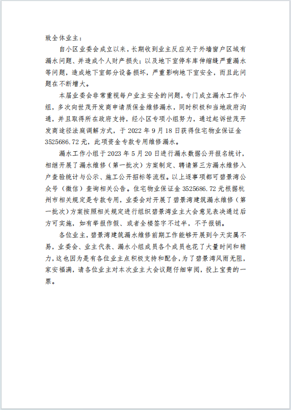 杭州市钱塘新区世茂江滨花园碧景湾小区第三届业主委员会
