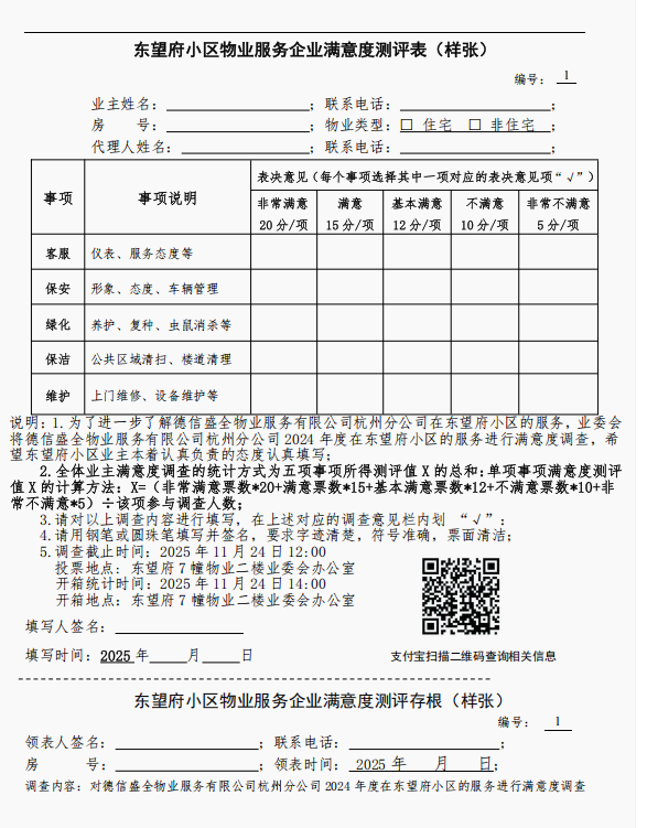 东望府小区物业服务企业满意度测评表(样张)