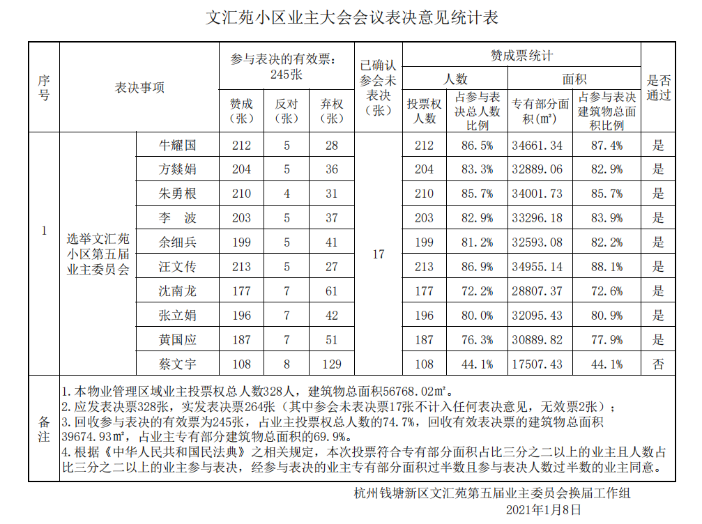 杭州钱塘新区文汇苑第五届业主委员会换届工作组