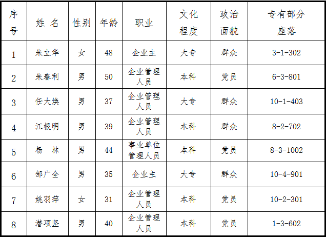 根据本届业主委员会委员候选人产生办法,在业主自愿报名的基础上,经杭州市风华苑小区物业管理委员会审核,康城社区监督,确认本次候选人符合要求,候选人8人名单公告如下: