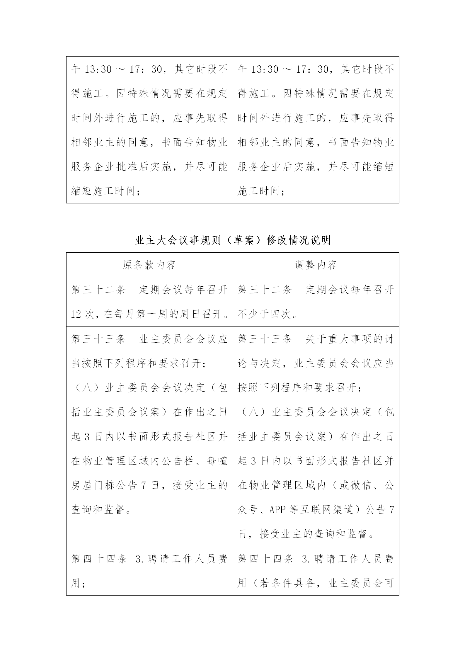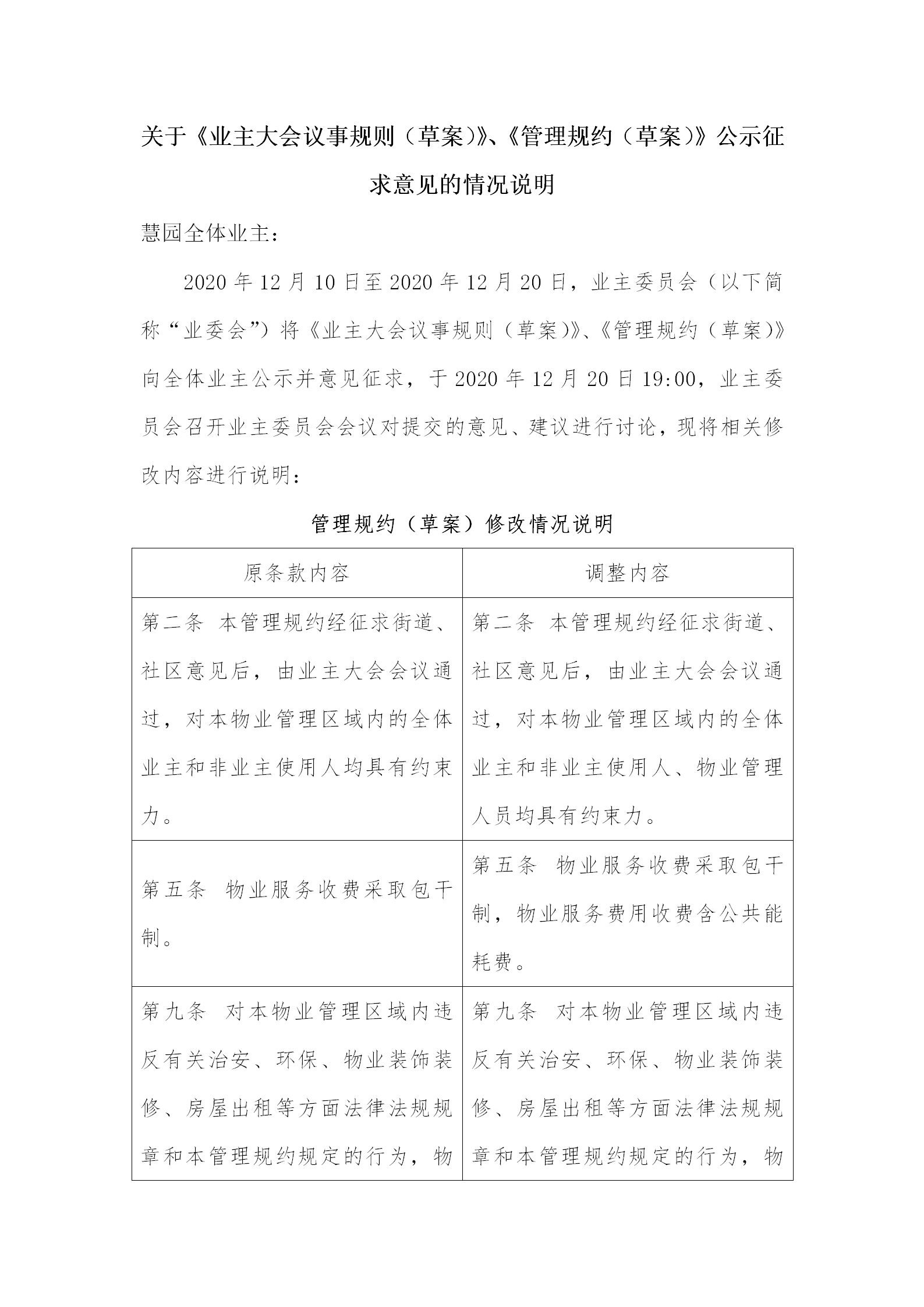 关于《业主大会议事规则(草案)》、《管理规约(草案)》公示征求意见的情况说明