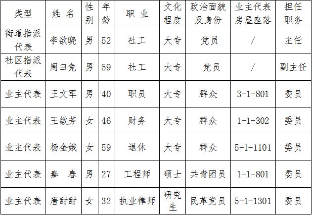 其中,物业管理委员会主任李欲晓、副主任周彐兔。
