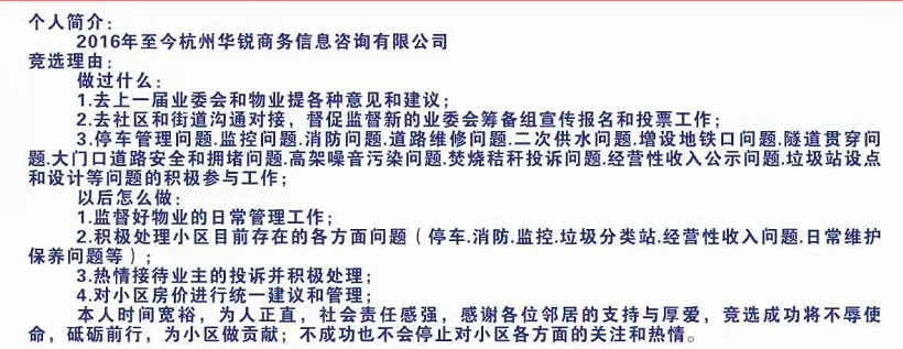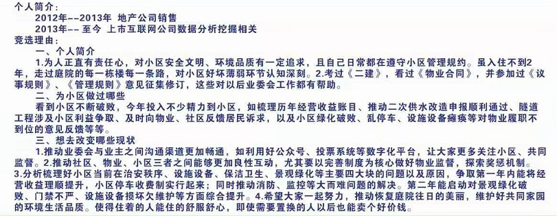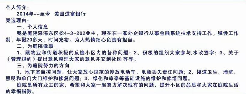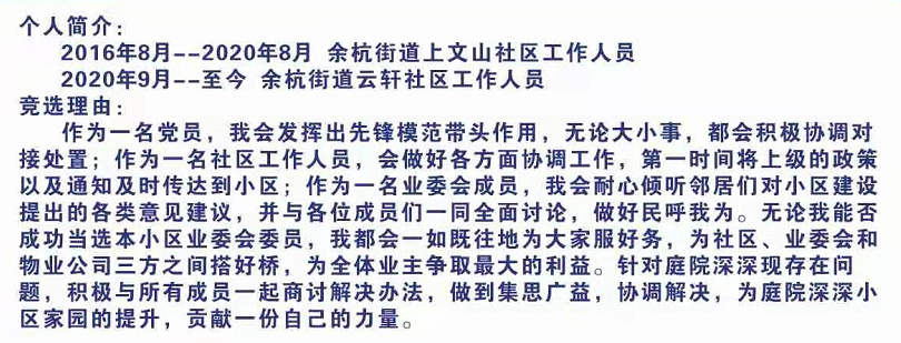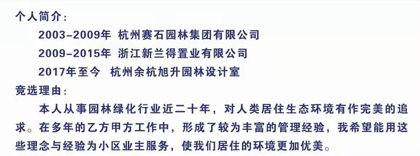 庭院深深业第三届业主委会会委员候选人简介