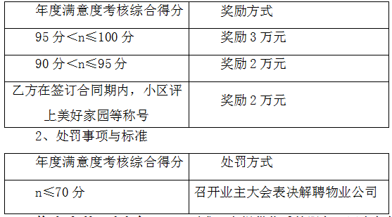 修改后:第二十九条(二)要求乙方提供优质的服务,甲方每年对物业进行“业主满意度调查”,根据业主满意率对物业进行考评,具体如下: